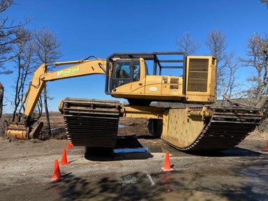 The Herring River project's plan for vegetation management states that heavy treaded equipment such as the "Brontosaurus" tree mulcher shown here would be used to clear out trees killed by saltwater inundation.